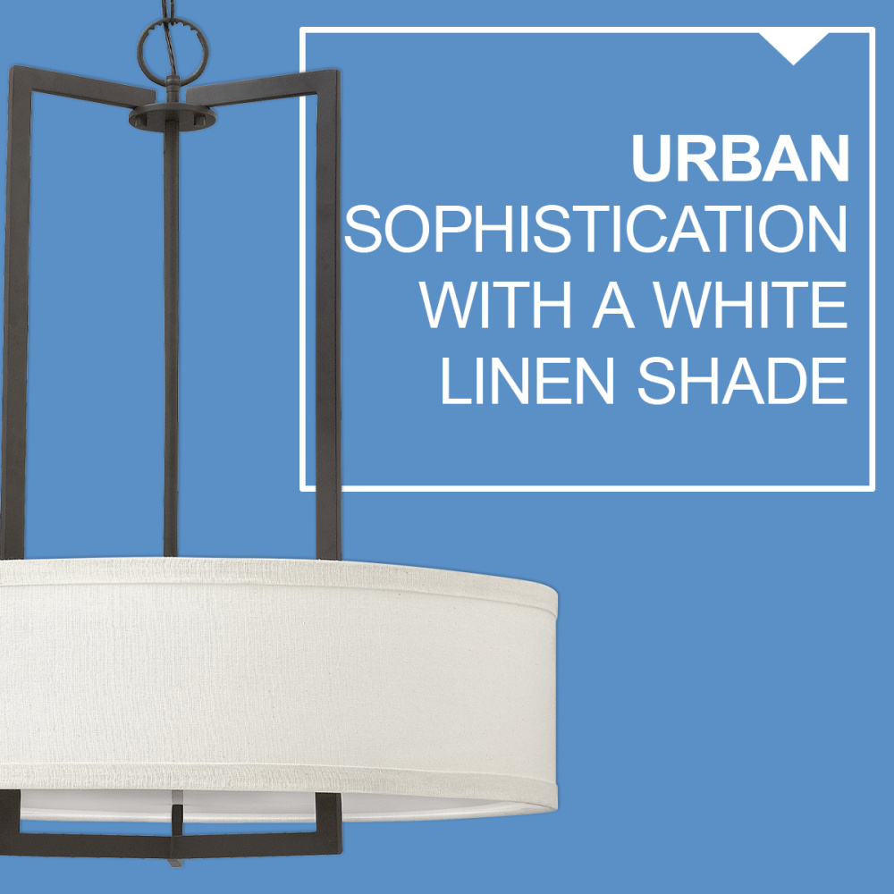 Hampton is a modern transitional design, offering the ultimate in urban sophistication. The minimal, rectangular frame is softened by a contemporary off-white linen drum shade.